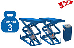 Заглубляемый «ровный пол», грузоподъемность 3 тонны. Для слесарных, кузовных, шиномонтажных работ и зоны приёмки. Оборудован пневматическим стопорным механизмом – требуется подключение к пневмолинии. Раздвижные трапы подъемника позволяют увеличить длину платформ с 1550 до 1750мм. Высота подъема 2130мм, от уровня пола 1800мм., заглубление 330 мм. Расстояние между платформами 780 мм. Длина трапов в сложенном состоянии 1580 мм. Стойка управления подъемником расположена отдельно. В комплекте резиновые накладки (4шт.).