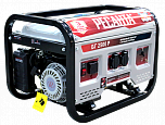 Мощность 2,5 кВт. Напряжение 220В. Применяется для резервного, сезонного или аварийного потребления. Генератор оснащен поршневым бензиновым четырехтактным двигателем внутреннего сгорания (с возможностью работы на газе). Генератор имеет пусковой стартер, а так же элементы управления и безопасности. Собственный запас бензина позволяет ему не останавливаться на протяжении почти 8 часов. Тип стартера: Ручной и электрический.