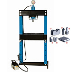 Пресс пневмогидравлический — для увеличения скорости работы неответственных деталей (втулки), где есть поток по выпрессовки, ручной привод — для точного дозирования усилия ответственных деталей (подшипники). Насос — 2 плунжера. Лебёдка для подъёма/опускания каретки. Манометр. Рекомендуется для выпрессовки подшипников, деталей машин, втулок и т.п. в автосервисе. Усилие 50 тонн. Рабочее окно 690х1010 мм. Доставка по РФ и ТС. Гарантия 12 мес.