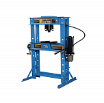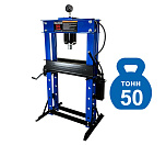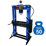 Усилие 50 тонн. Пресс гидравлический. Привод: ручной. Две скорости подачи пуансона. Первая скорость для быстрой подачи штока к рабочей поверхности, вторая (медленно) для выпрессовки. Применяется для запрессовки подшипников, деталей машин и механизмов в гаражах, автосервисах и СТО.