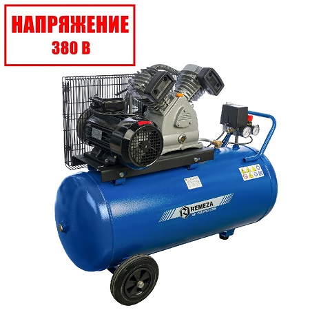 Воздушный поршневой компрессор REMEZA с ресивером 100 л, масляный, двухцилиндровый, мощностью 2,2кВт, Напряжение 220В. Производительностью 400 л/мин с коаксиальным приводом применяется в строительных, автосервисных и медицинских работах.