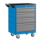 Тележка инструментальная PROFFI 795.4 комплектуется 4 выдвижными ящиками. Тележки изготовлены высотой 795 мм. Грузоподъемность ящиков до 30 кг.