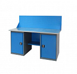 Двухтумбовый. Допустимая нагрузка на столешницу 1000 кг. Опорные элементы выполнены сварными из холоднокатаной стали. Для выполнения сборочных, ремонтных, слесарных, монтажных и других видов работ на производстве, в сервисных центрах, мастерских, гаражах, а также для обучения технологии в учебных заведениях. Комплектуется полкой-стенкой, расположенной под столешницей для удобного размещения габаритного инструмента и оснастки. Размеры верстака: 855x1796x696 мм. Вес: 119 кг. Поставляется в 4 комплектациях на выбор.