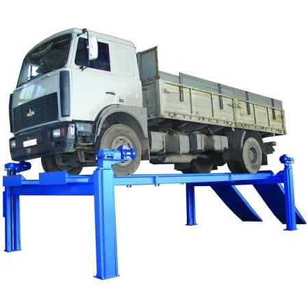 г/п. 10 тонн. Четырехстоечный. Электромеханический. Для ремонта грузовых автомобилей отечественного и импортного производства и автобусов на любой ровной площадке. Привод червячный редуктор, с концевыми выключателями нажимного действия, ограничивающими ход каретки. По отдельному заказу комплектуется установочными рамами. Поставляется в 2 вариантах Стандарт (в помещение) и ТЗ (Для эксплуатации на улице).