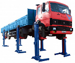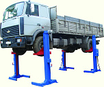 г/п. 10 тонн. Четырехстоечный. Электромеханический. Для ремонта грузовых автомобилей отечественного и импортного производства и автобусов на любой ровной площадке. Привод червячный редуктор, с концевыми выключателями нажимного действия, ограничивающими ход каретки. По отдельному заказу комплектуется установочными рамами. Поставляется в 2 вариантах Стандарт (в помещение) и ТЗ (Для эксплуатации на улице).