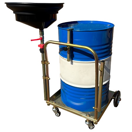 Установка для слива/сбора «отработки», антифриза в бочки 60÷220л. на подкатной анодированной тележке. Для любых транспортных средств, вывешенных на подъёмнике. Высота регулируется зажимом 1450÷2050мм. Фиксатор бочки на тележке. Сетка для улавливания мелких деталей, фильтров и предотвращения разбрызгивания. Поворотная воронка 360⁰ со смещённым сливным отверстием. Шаровой кран для контроля слива. Обрезиненные колёса большого диаметра для не ровных полов. Контроль заполняемости бочки через отверстие для воздуха.