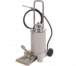 Нагнетатель консистентной (пластичной) смазки. Плунжерный. Ножной привод - позволяет за два-три качка ногой смазывать большинство шарнирных соединений. Емкость бака для смазки 13 кг. Давление смазки 296-345 Атм. Длина шланга - 4м. Производительностью 300 г/мин. Габариты: 510X310X685 мм, вес 18 кг.