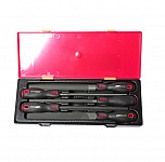 Набор отверток в прочном презентабельном боксе (8 предметов). В комплекте: отвертки со сквозным стержнем -5 шт, отвертка с двухсторонней насадкой - 1 шт, отвертки с одноцветной рукояткой- 2 шт.