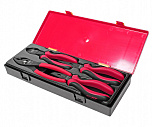 Набор губцевого инструмента 4 предмета в прочном презентабельном боксе. В комплекте: утконосы 8, утконосы загнутые 8, бокорезы 7, пассатижи слесарные 8.