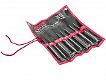 Набор выколоток в прочном презентабельном боксе (7 предметов). В комплекте: (7 шт. выколоток размеры 2, 3, 4, 5, 6, 7, 8 мм). Материал: хром-молибден. Эргономичный дизайн рукоятки.
