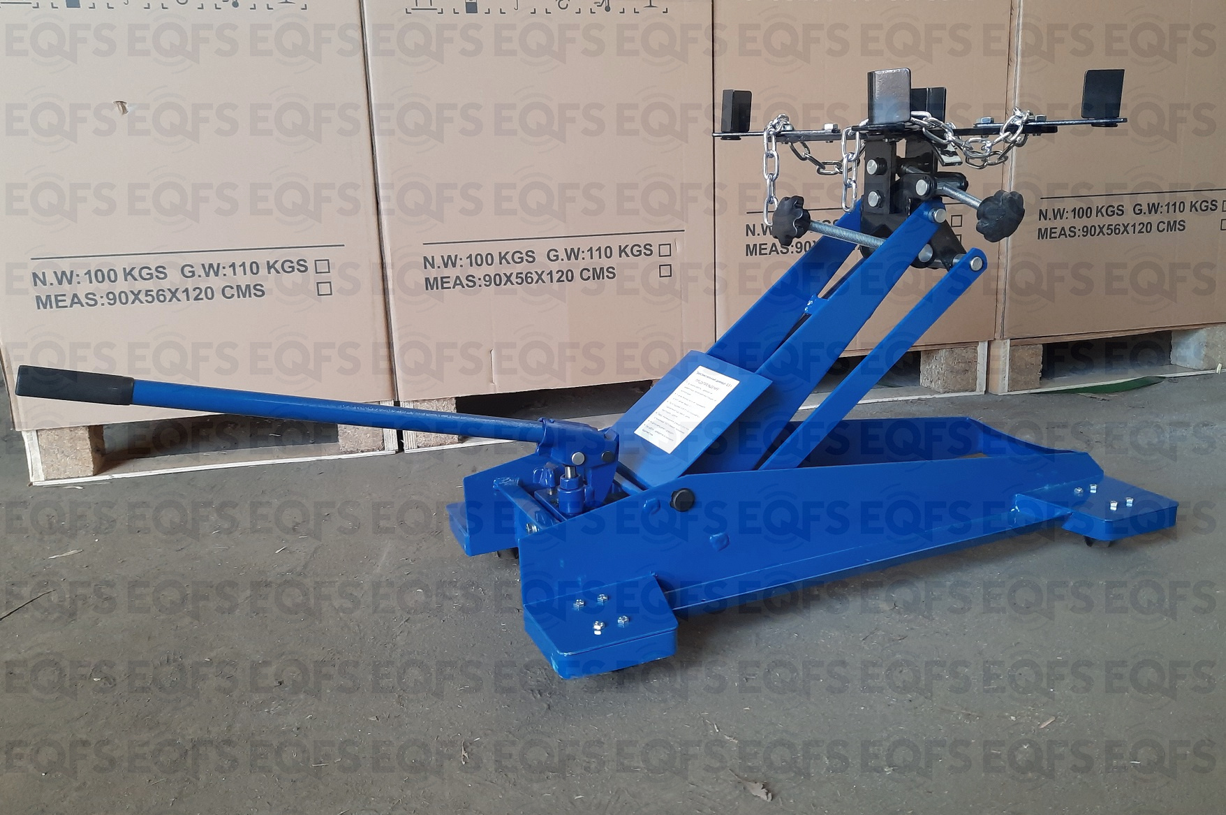 Трансмиссионная гидравлическая стойка (домкрат трансмиссионный) является мобильным подъёмным устройством. С ее помощью можно поднять и переместить снятый узел. При подъеме на требуемую высоту удобно монтировать снятый агрегат. Цвет темно-синий.