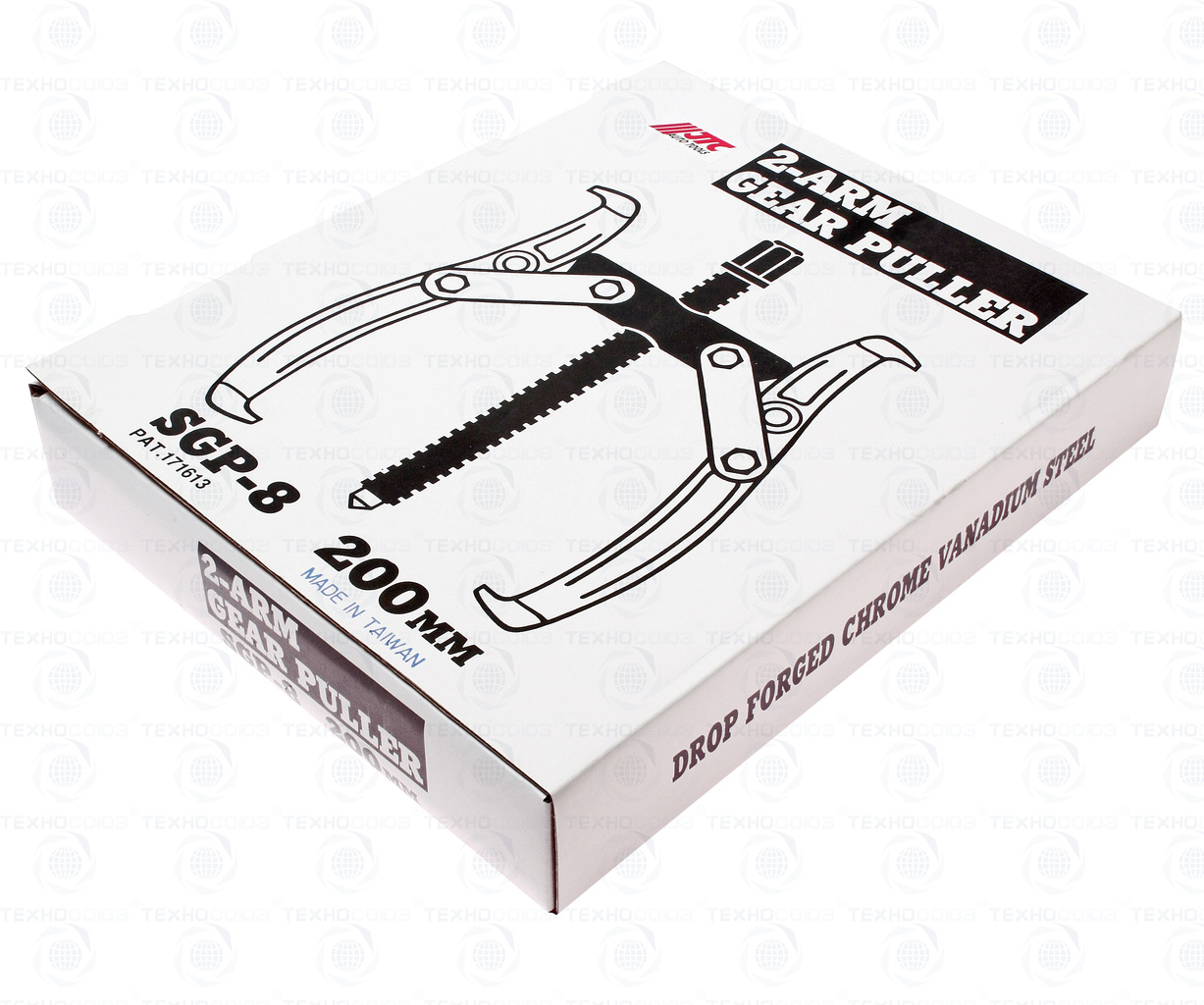 Съемник Комплектация Ходовой винт с резьбой высокой точности, высокопрочная траверса, скобы (4 шт.), лапки с захватами (2 шт.). Описание Двухзахватный съемник. Инструмент изготовлен из хром-ванадиевой стали, кованая штамповка. Захваты изготовлены методом точного литья. Накатанная метрическая резьба с мелким шагом. Конусная опора ходового винта. Технические характеристики Размер: 8". Диапазон захвата, мм: 80-203. Общая длина, мм: 315. Ширина, мм: 22. Длина резьбы, мм: 280. Важные рекомендации Если нет нагрузки, то ходовой винт съемника должен почти без усилий передвигаться в траверсе с малым люфтом. Ходовой винт и резьбу ходового винта съемника подшипника надо держать в чистоте и смазанными. Грязный винт и резьба ходового винта ведет к ухудшению качества эксплуатации винтового съемника подшипника, а в дальнейшем к его поломке. Внимание! Если во время работы происходит деформация скоб, необходимо немедленно прекратить работу и снизить дальнейшую нагрузку на инструмент.