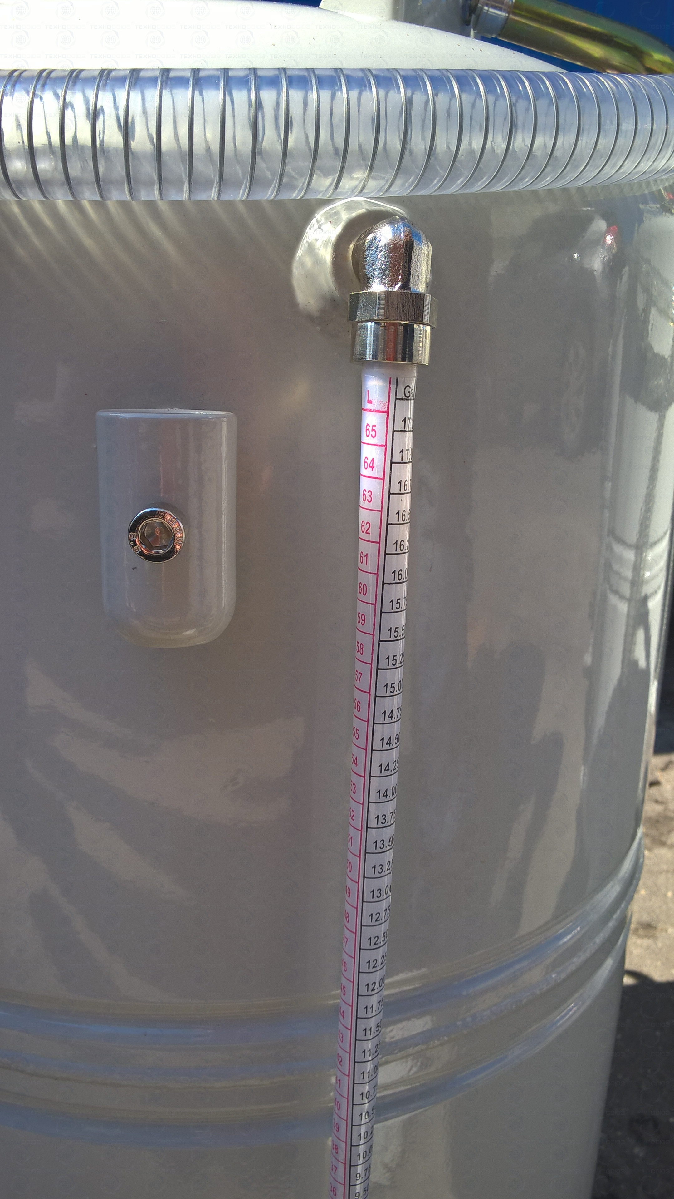 Маслосборник оборудован системой визуального контроля уровня в баке, что помогает избежать разлива отработки по полу цеха с его последующей уборкой.