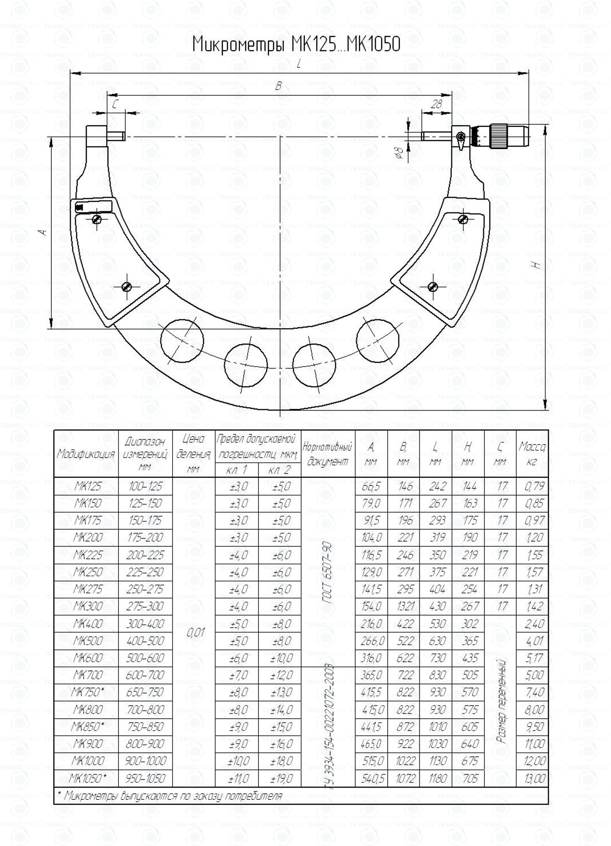 Микрометр гладкий МК 850 кл.1