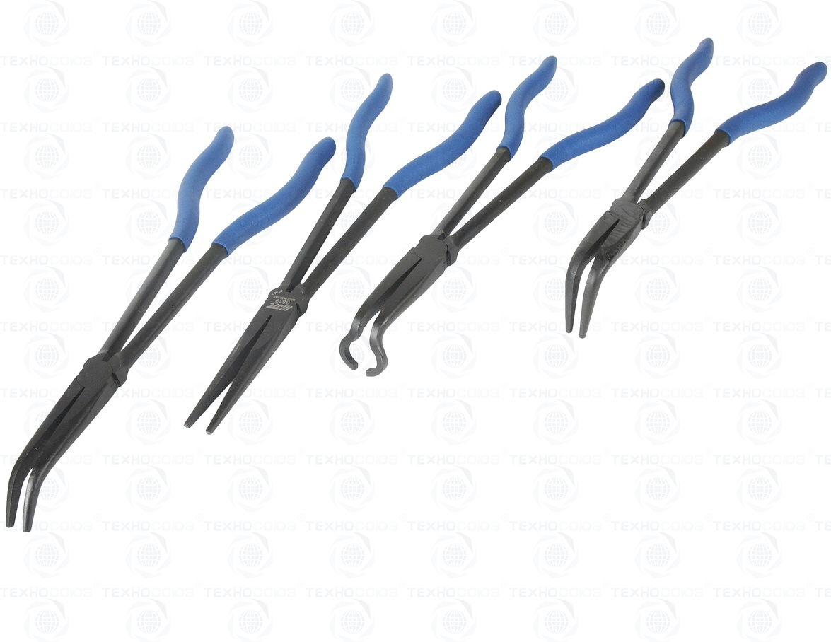 Набор губцевого инструмента 4 предмета в прочном презентабельном боксе. В комплекте: утконосы прямые, утконосы  45°, утконосы  90°, утконосы закругленные 1/2". Изготовлены из хром-молибденовой стали, характеризуются высокой прочностью и жесткостью. Конструкция инструмента обеспечивает комфортную работу на всех этапах. Длинные, тонкие захваты позволяют производить работы в условиях ограниченного пространства.
