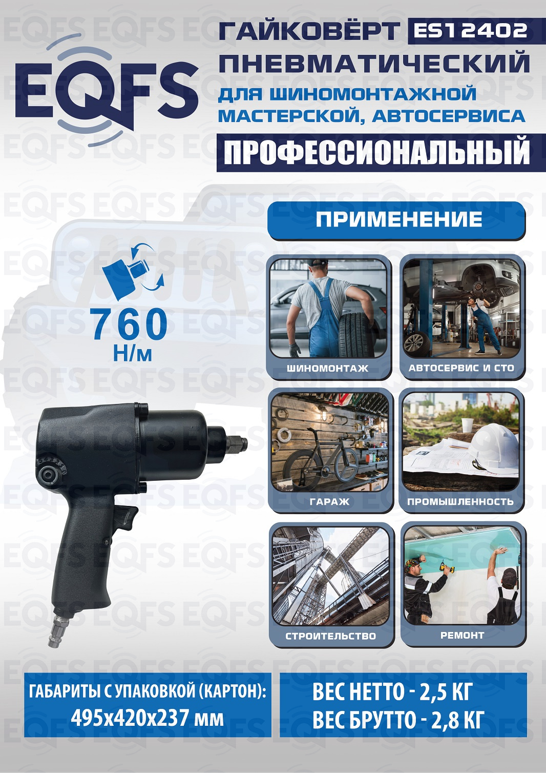 Рекомендуемое применение – шиномонтажные и слесарные мастерские, автотранспортные предприятия, автосервисы и производственные предприятия. Также рекомендуется к использованию на строительных площадках и предприятиях при монтаже металлоконструкций.
