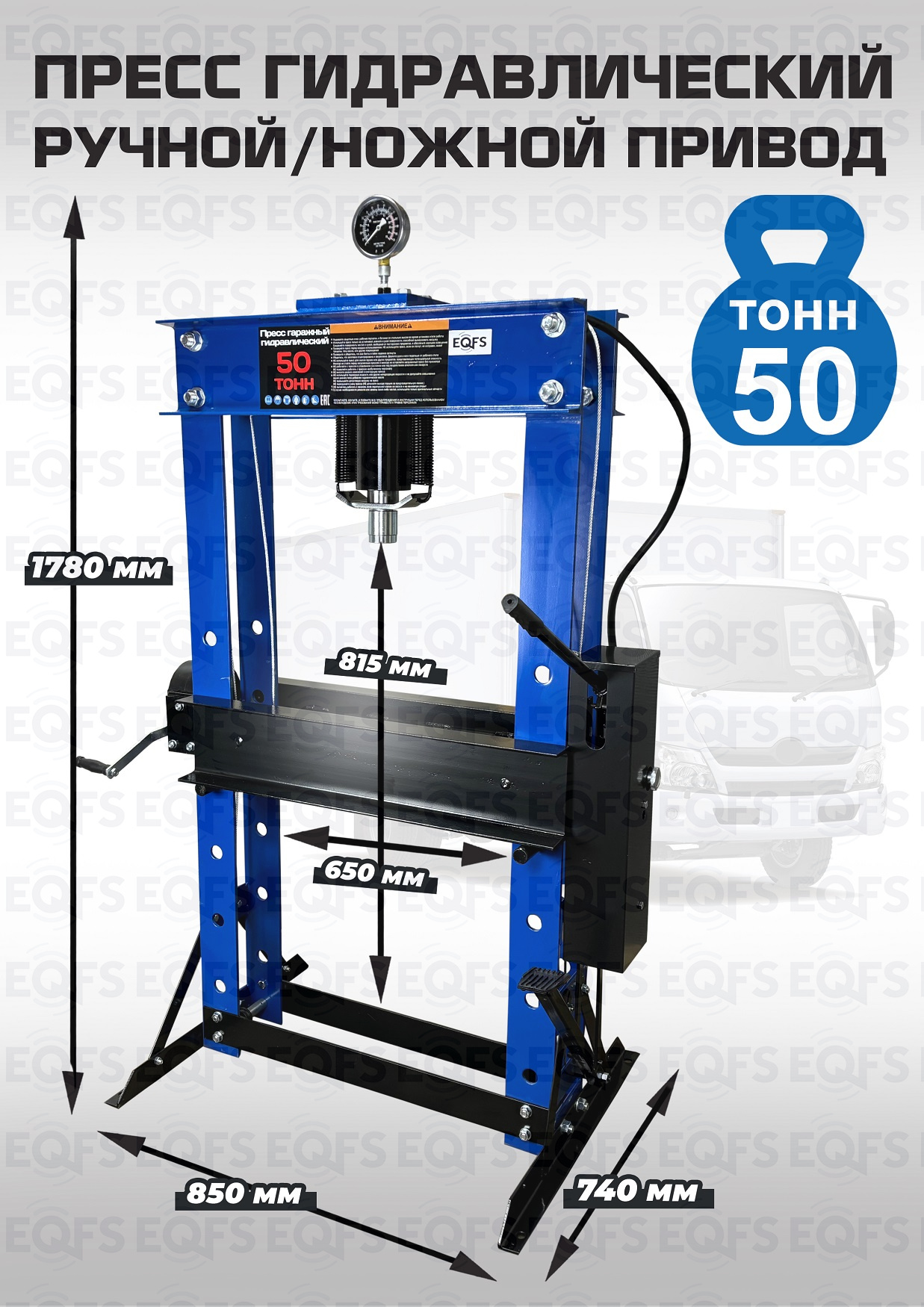 Пресс гидравлический ручной/ножной, 50 тонн, ES0500F-6