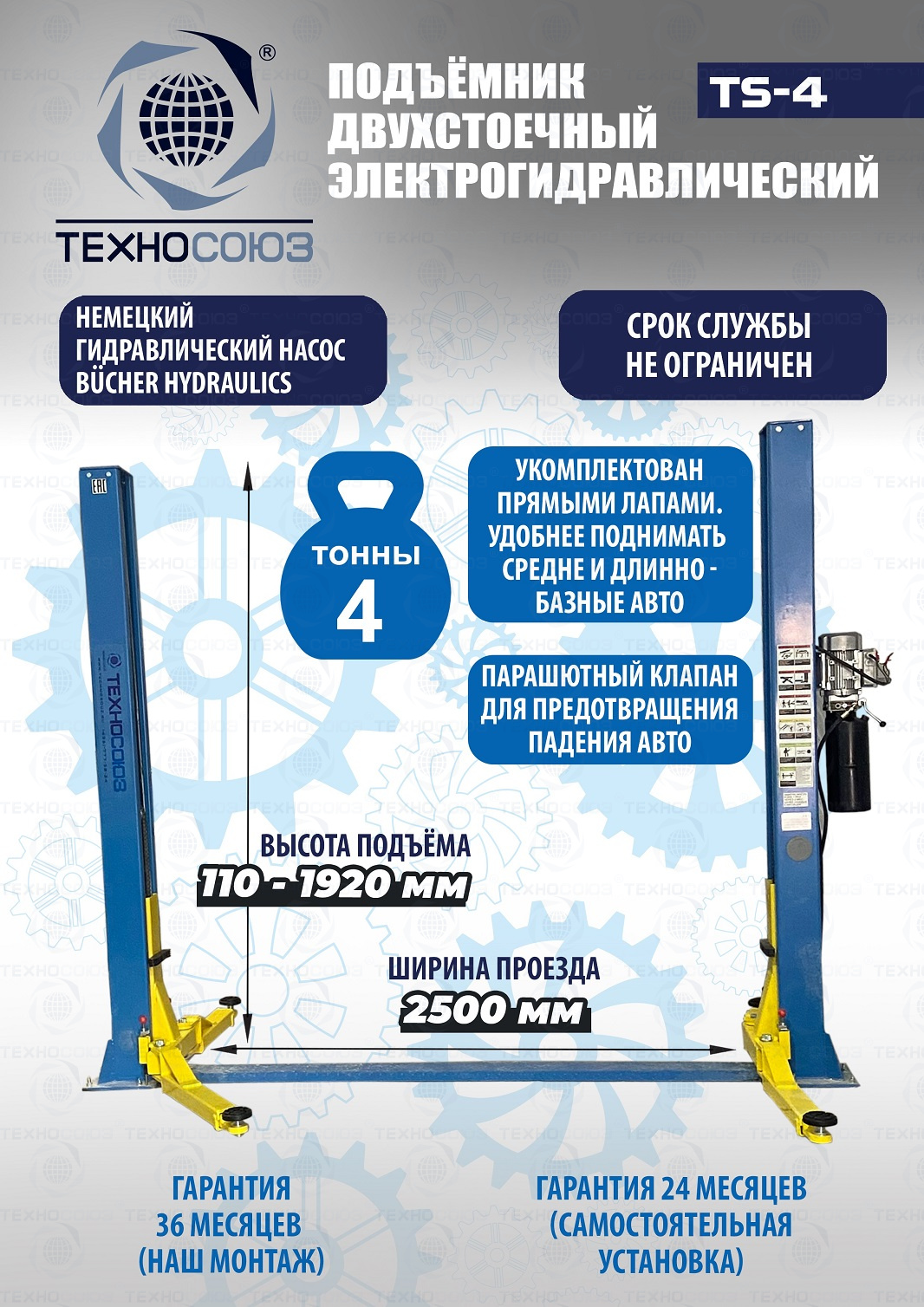 TS-4 Подъемник 2-хст., г/п 4 т, проставки, прямые лапы