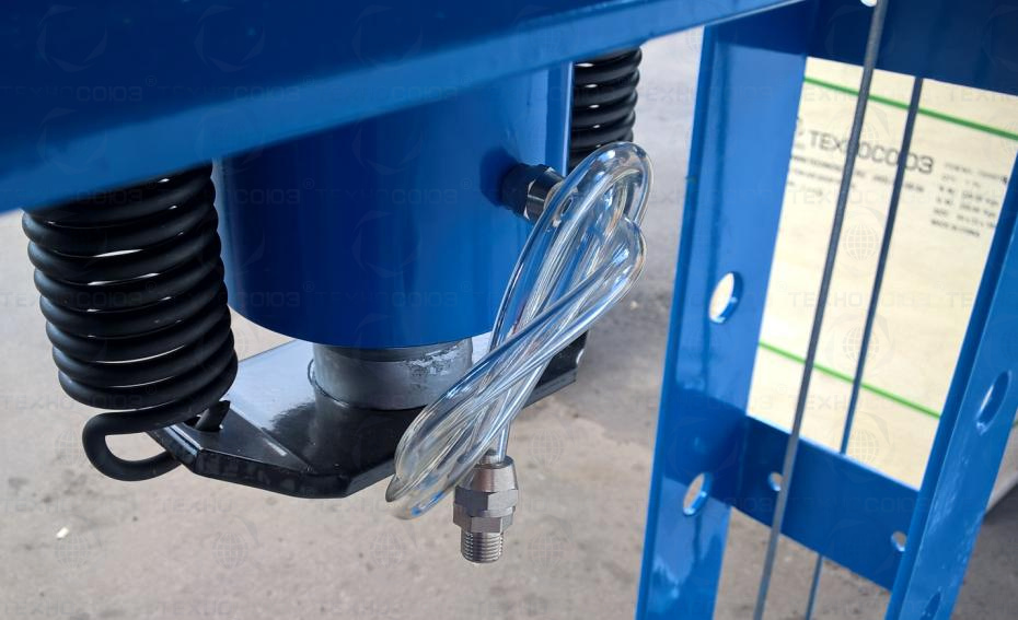 •    Пресс укомплектован гидравлическим ручным насосом с максимальным  усилием 50т.