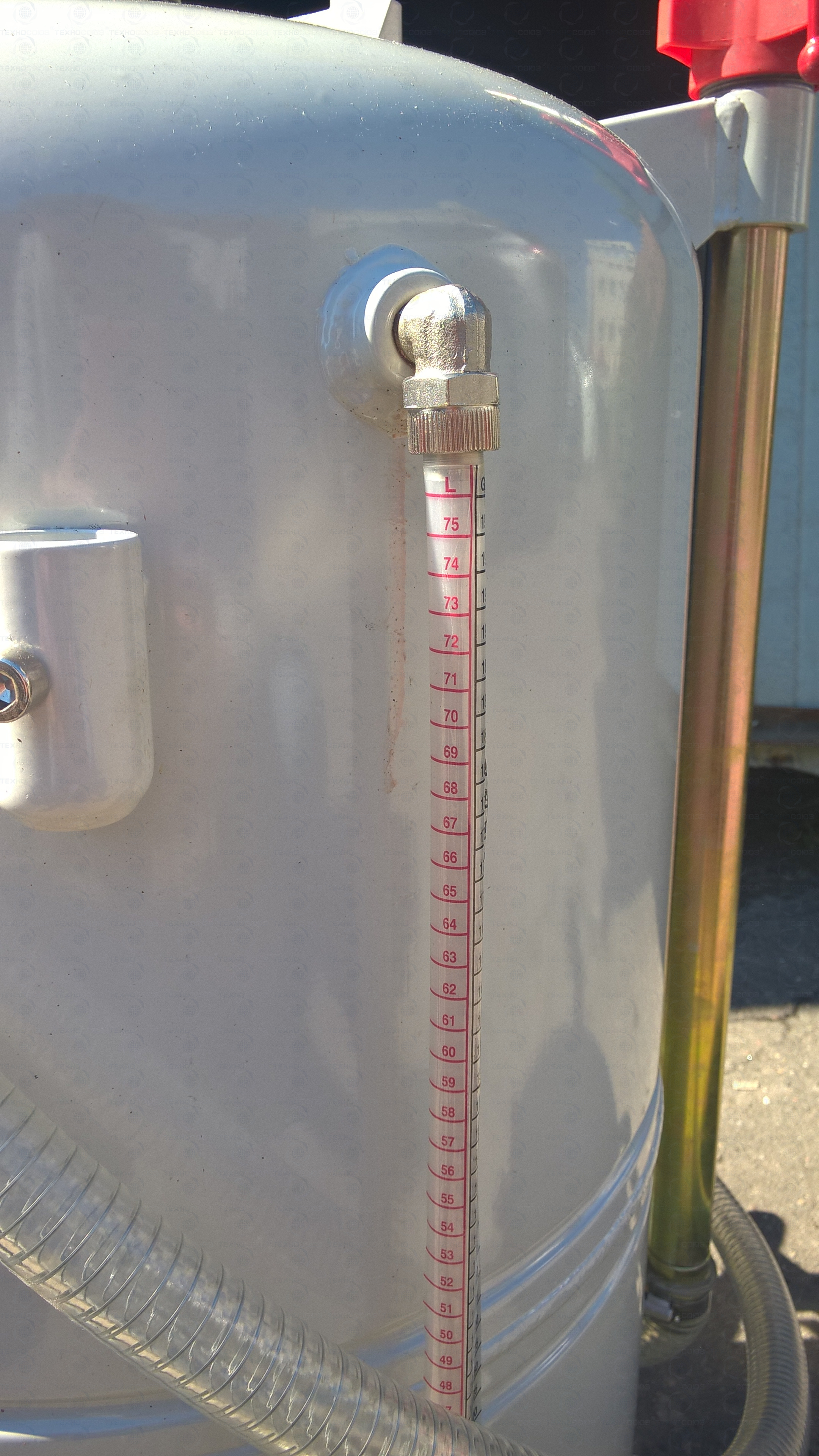 Маслосборник оборудован системой визуального контроля уровня в баке, что помогает избежать разлива отработки по полу цеха с его последующей уборкой.
