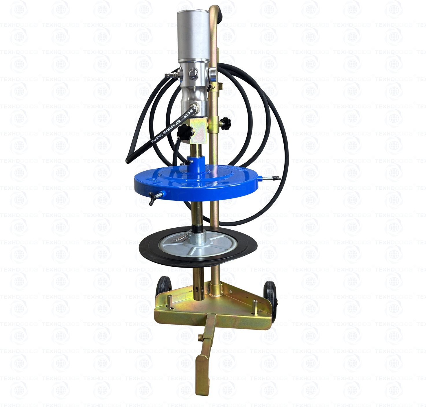 Нагнетатель смазки на ведро 18-20 кг. Пневмонасос 50:1 + тележка на 2 колесах с ручкой + армированный шланг длиной 4 м + крышка Ø 310 мм + мембрана + пистолет с наконечником для тавотниц оборудован "Z" образным шарниром для удобной и беспрепятственной работы в трудно доступных местах (вращение на 360град.). Подходит для ведер с внутренним Ø 260-300 мм. Давление смазки 350-400 Атм. Производительность 800 г/мин. Вес: 16 кг.